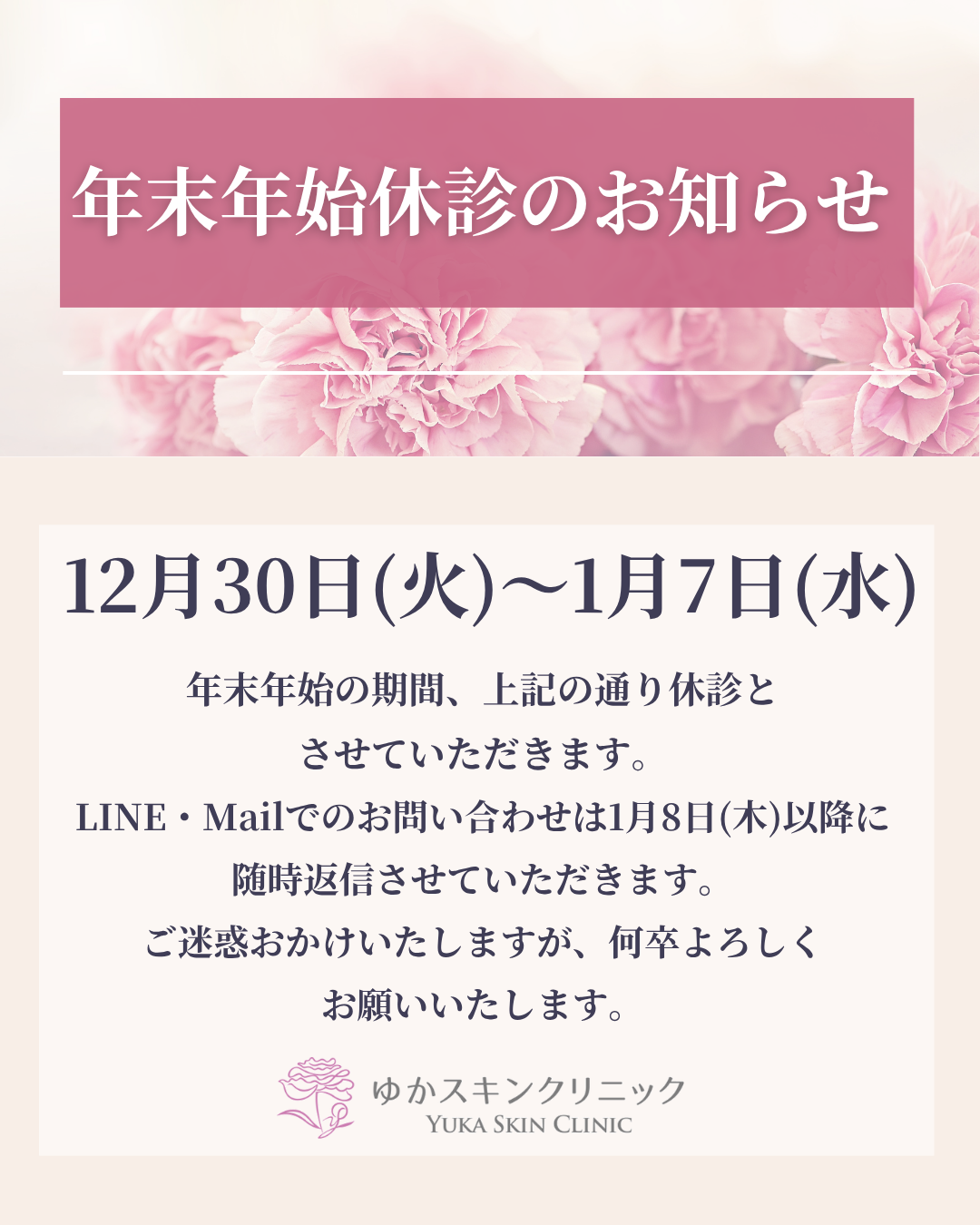 2025年12月30日(火)から2026年1月7日(水)の期間は休診とさせていただきます💦